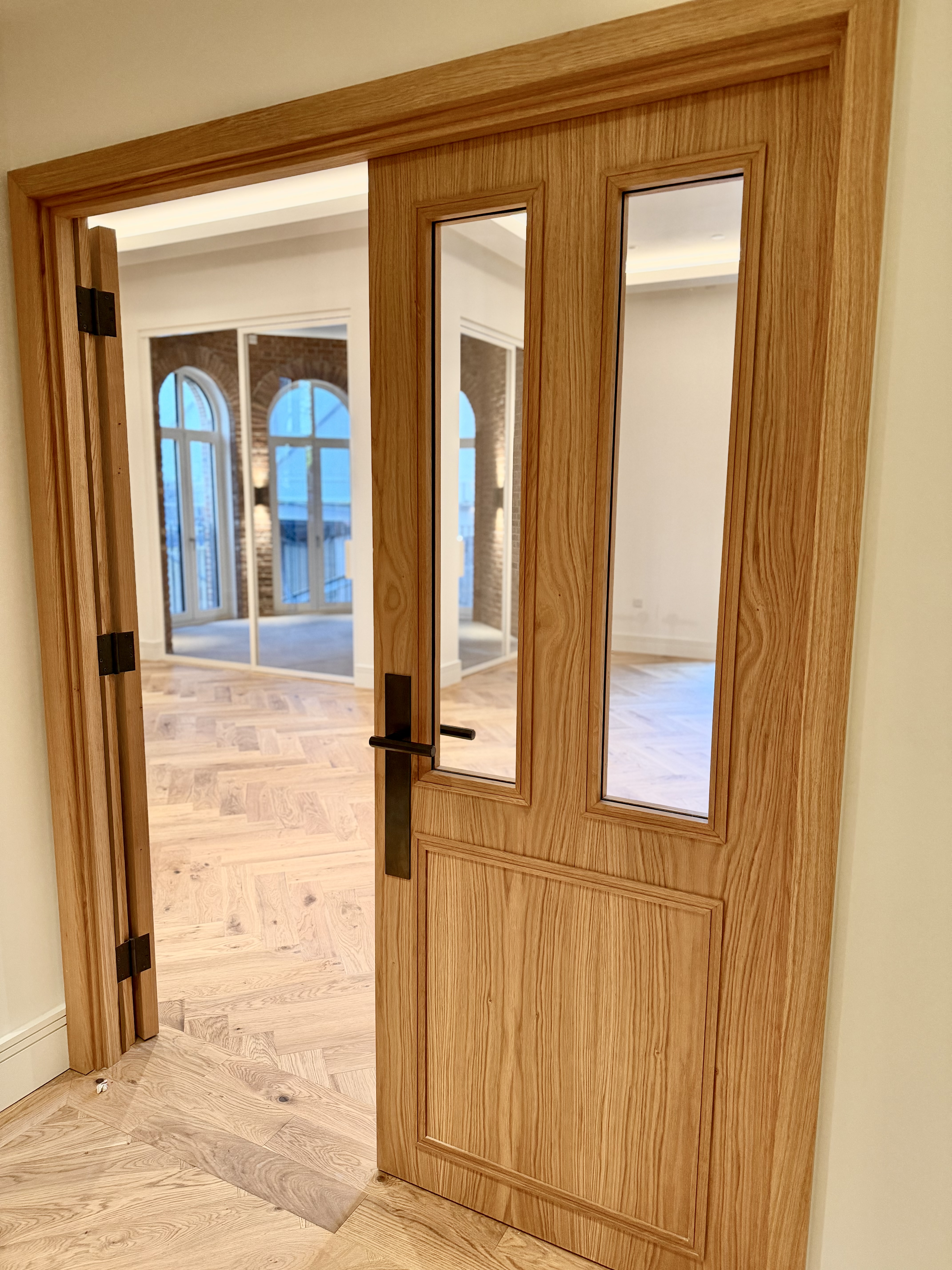 With impressive telescopic doors in two apartments, oak fire rated pocket doors, bespoke main entrance doors, LED imbedded handrails and outstanding herringbone flooring flowing through both shared and private spaces, the level of craftsmanship on display is something we can all be proud of. The attention to detail across every element reinforces the quality and care invested in delivering a development of this calibre.